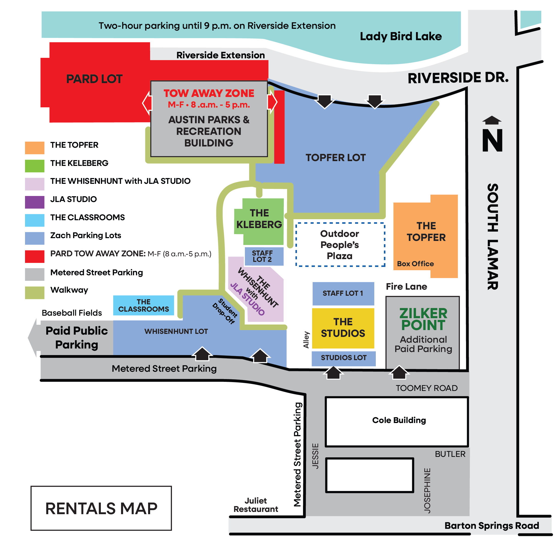 Features: 6,700 square feet of outdoor event space. Full TABC liquor license. Accommodates up to 82’x82’ tent (for additional rental cost).